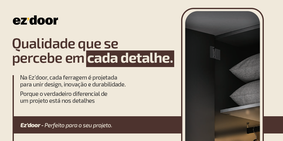 A Ez’door possui em seu catálogo ferragens especiais, leves e de qualidade para servir como estrutura para essas portas.