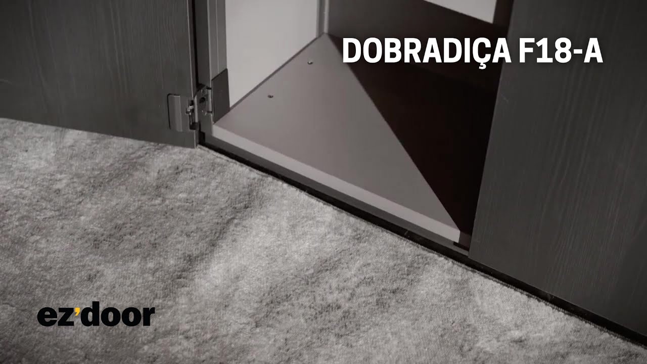 Dobradiça embutida para portas de giro. Destinada para portas de madeira e mdf, a dobradiça F18 conta com sistema de fechamento silencioso e abertura de até 260º. Opções nos modelos reta e curva, para se adequar à sobreposição do seu projeto.