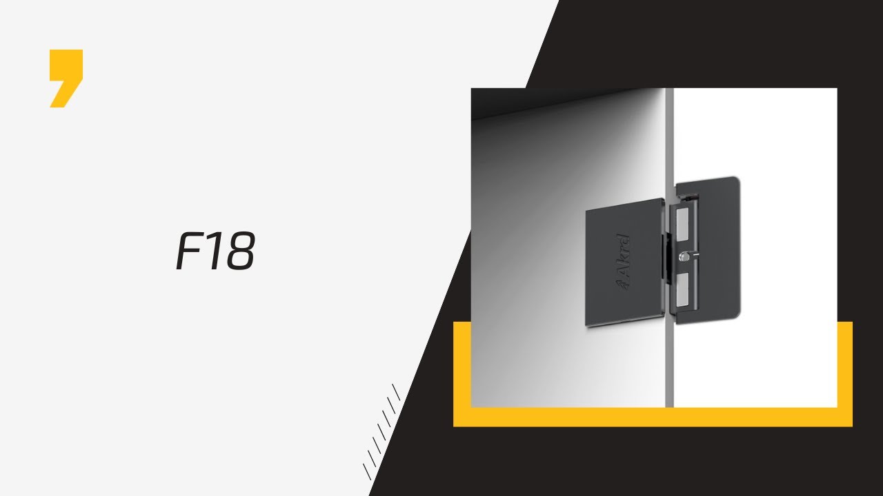 Dobradiça embutida para portas de giro. Destinada para portas de madeira e mdf, a dobradiça F18 conta com sistema de fechamento silencioso e abertura de até 105º. Opções nos modelos reta e curva, para se adequar à sobreposição do seu projeto.